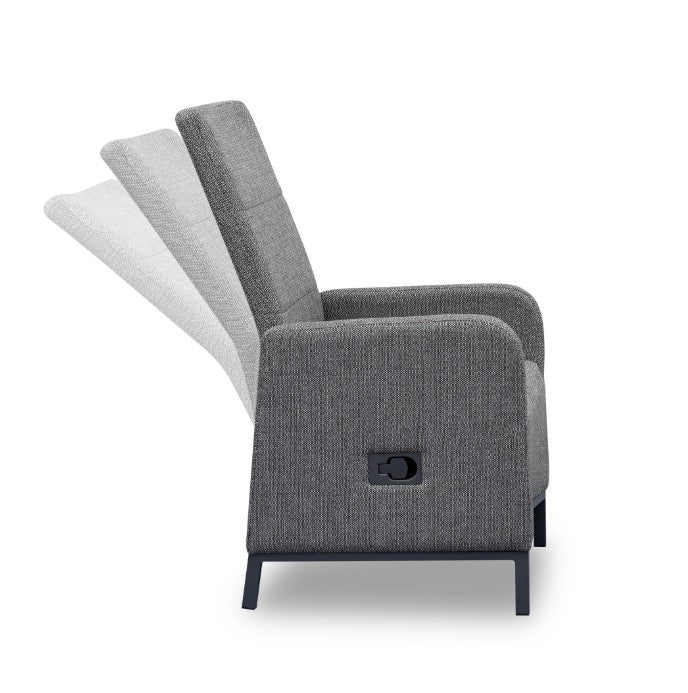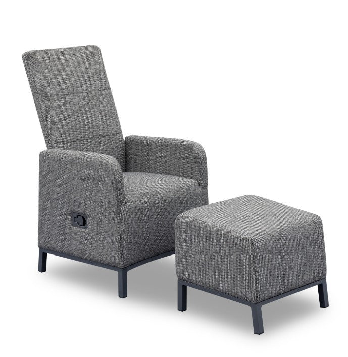 Der Riga Liegesessel bietet mehrere Liegepositionen und wird mit einem passenden Fußhocker für individuellen Komfort geliefert. Der Sessel ist mit Sunproof Outdoor-Stoff bespannt, was ihn wetterfest und langlebig macht. Ideal für sonnige Tage oder ruhige Abende im Garten oder auf der Terrasse.