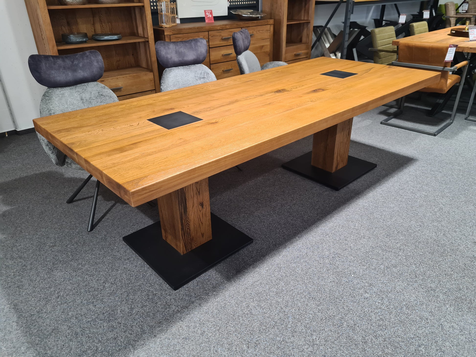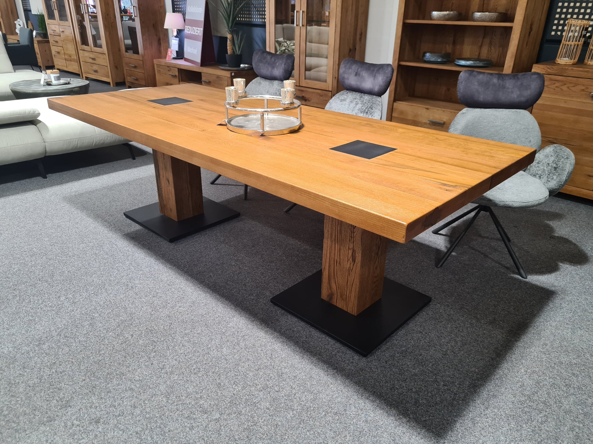 Esstisch aus Balkeneiche 6 ( 3+3 ) cm aufgedoppelt aus dem Hause Niehoff