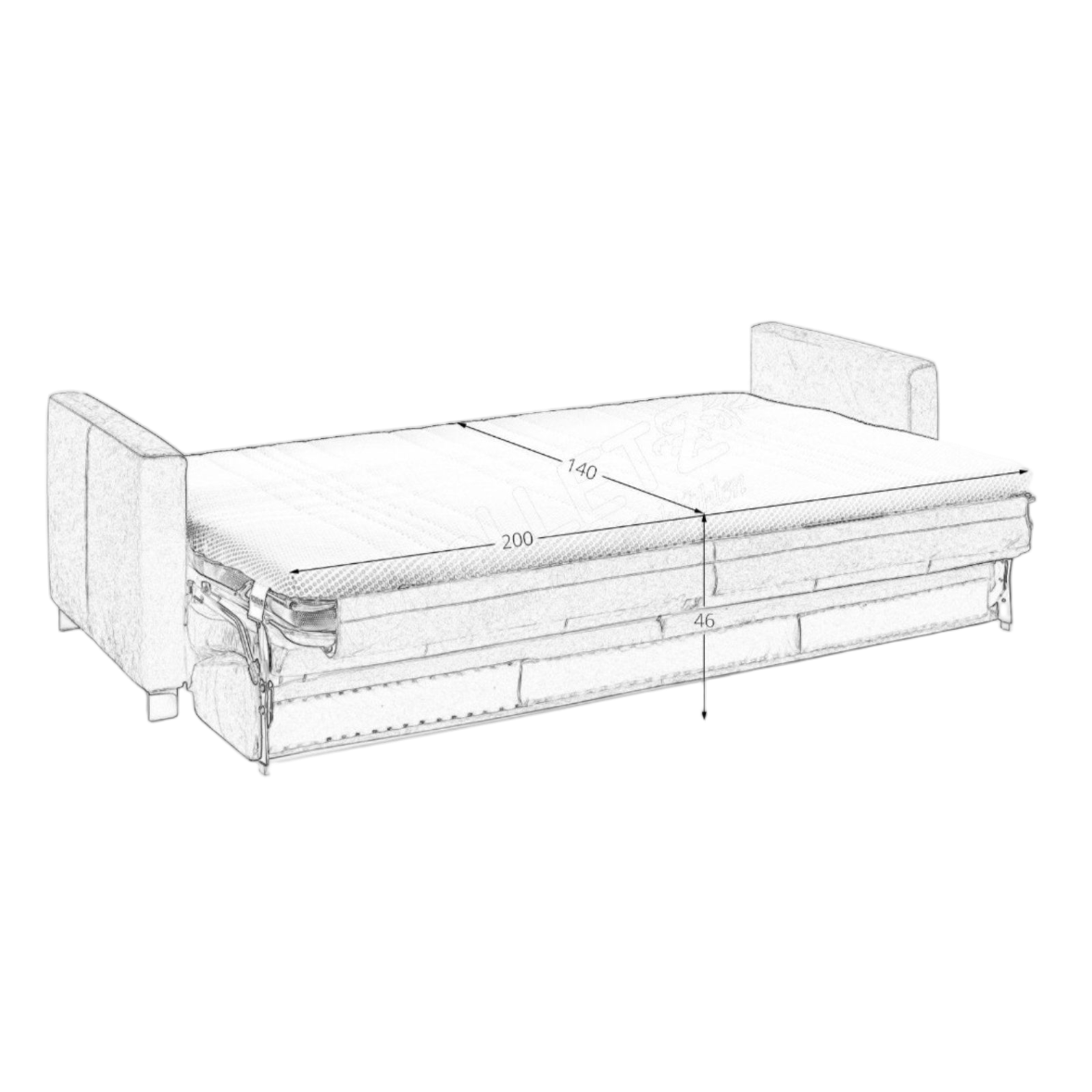 Mit wenigen Handgriffen lässt sich das Sofa in eine großzügige Liegefläche von ca. 140 x 200 cm verwandeln – perfekt für Gäste oder entspannte Fernsehabende. Der praktische Bettkasten im Rücken bietet zusätzlichen Stauraum für Decken und Kissen, während die 14 cm hohe Kaltschaummatratze (HU-MQ014KA) hervorragenden Schlafkomfort garantiert.