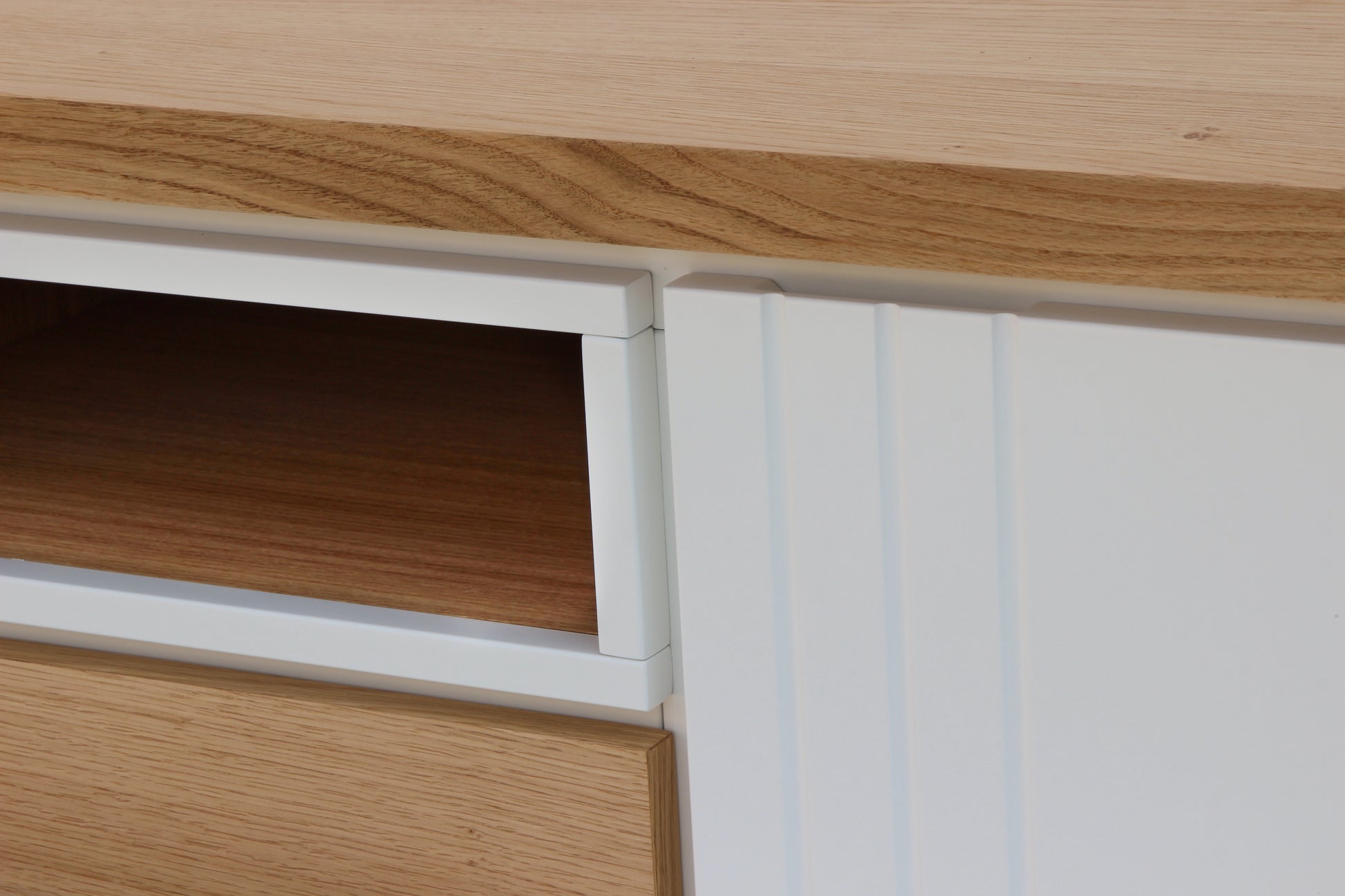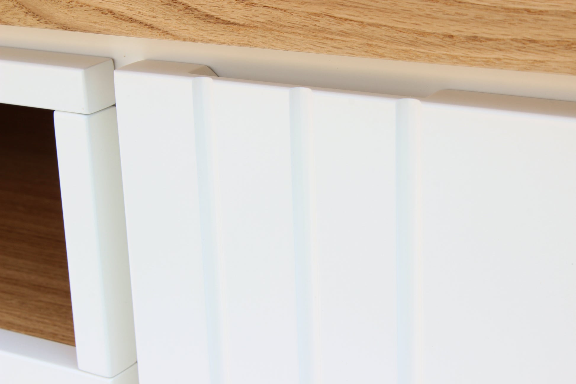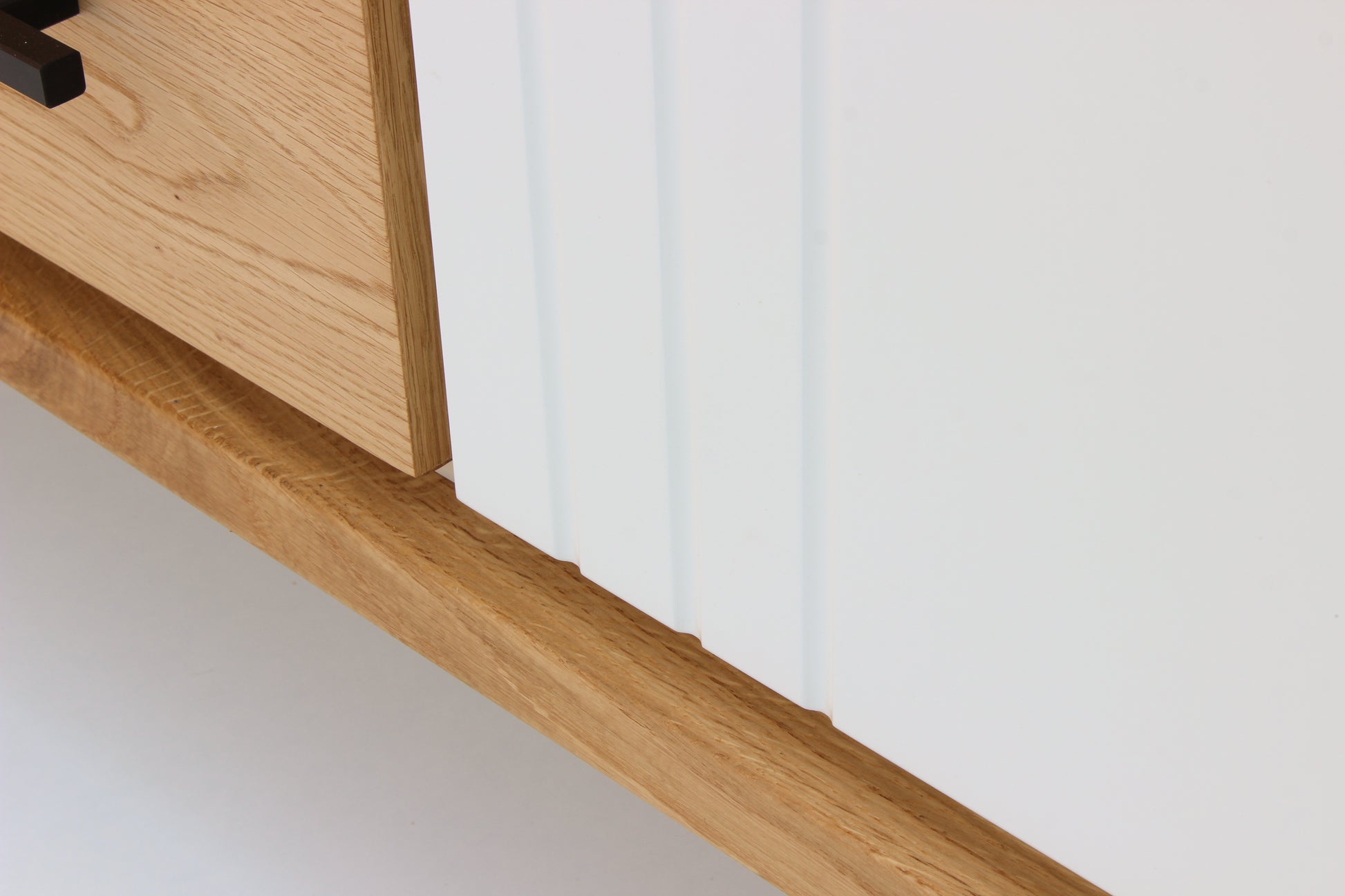 Klare Linien, hochwertige Materialien und fein abgestimmte Details machen „Petar“ zum Blickfang im skandinavisch inspirierten Wohnstil. Die natürliche Maserung der Eiche bringt Charakter in den Raum, während die weiß lackierten Fronten für Frische und Leichtigkeit sorgen.