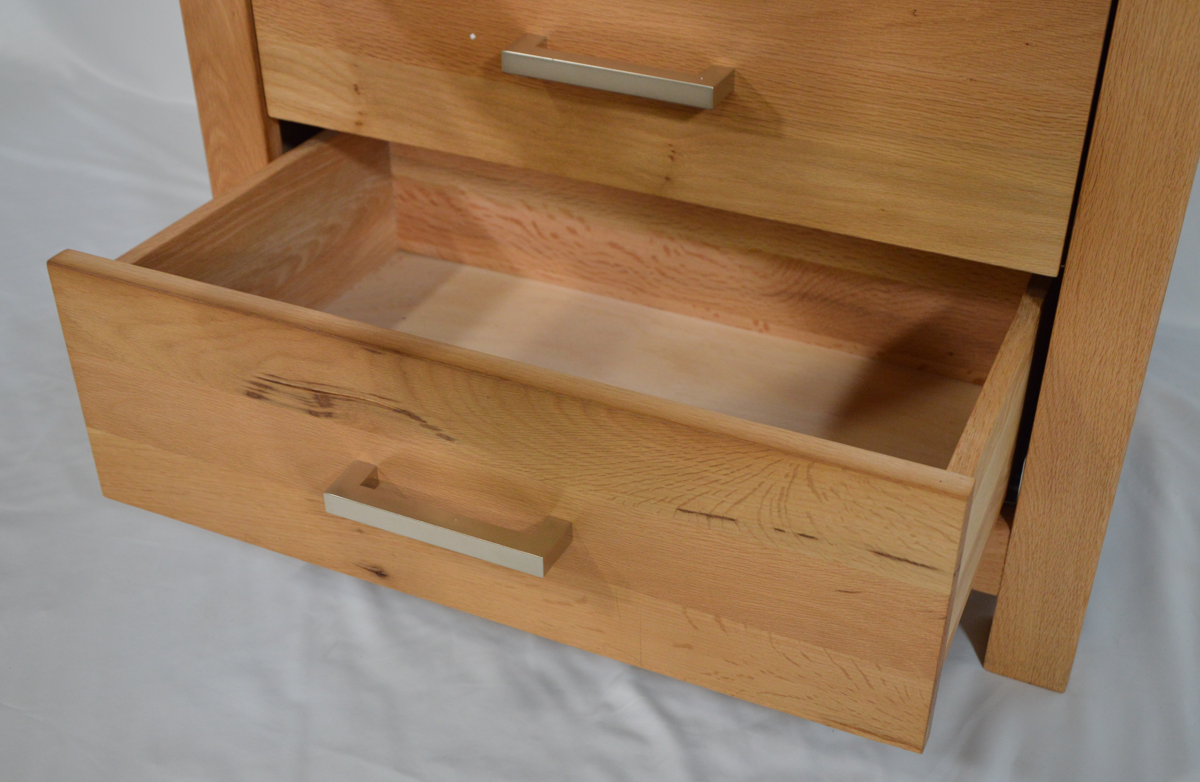 Mit der NIEHOFF Vitrine System-Vintage setzen Sie Ihre liebsten Deko-objekte wie gekonnt in Szene. Der Schrank aus strukturgehobelter Balkeneiche mit einer Wachseffekt-Oberfläche bietet viel Stauraum und ein schönes, modernes Design. Die massiven Edelstahlgriffe verleihen der Vitrine das gewisse Etwas und runden das Gesamtbild optisch ab. Auf drei Glasböden, die hinter der Glastür liegen, präsentieren Sie Ihre schönsten Stücke und in den beiden Schubladen mit Selbsteinzug verstauen Sie alles weitere bequem und staubfrei. Vitrinenschrank, Maße ca. 70 x 188 x 43 cm (BxHxT)