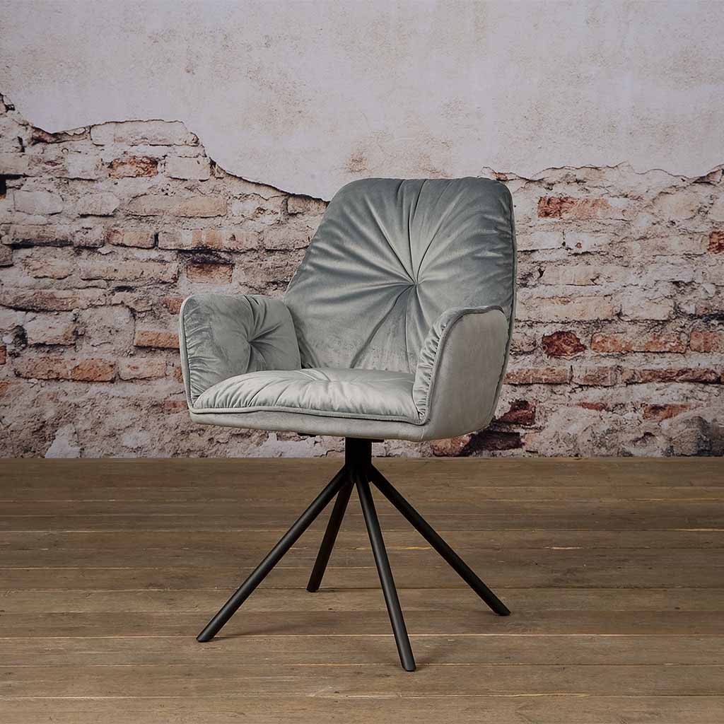 Polstersessel Palma mit Armlehnen – Samt Esszimmerstuhl grau